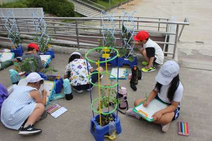 暑くなってきたので、夏野菜がどんどん生長しています。国語で書き方を学んだので、それを使い観察文をよく見て書いていました。