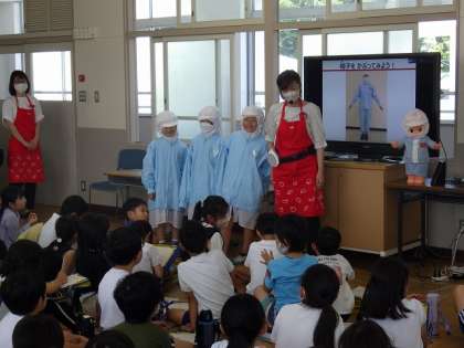 社会科の授業で、キューピーマヨネーズ拳母工場の方にお越しいただき、マヨネーズ作りの秘密をたくさん教えていただきました。実際の商品や作業着を見たり着たりすることができ、子供たちも興味津々で話を聞いていました。今日知りえたことを今後の社会科の授業に生かしていきたいと思います。また、お土産もいただきましたので、ご家庭でもお子様と今日の授業の話をしていただけると嬉しいです。