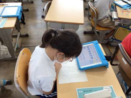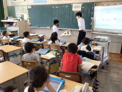 バスの中で、という資料を読んで親切について考えました。話し合いで、親切とはみんながうれしくて、気持ちのよくなるものだというまとめになりました。