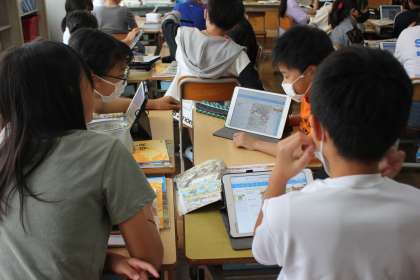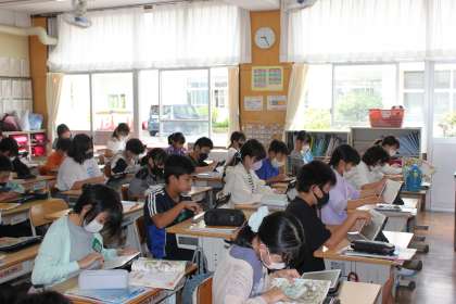 平安時代の貴族のくらしの絵を見ながら、これからの学習課題を立てました。友達の気付いたことを教えてもらいながら、学習を進めていました。