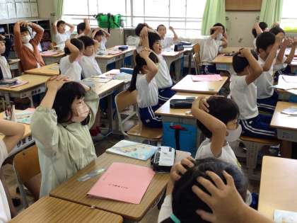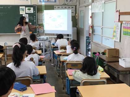 1日に行うことを英語で練習しました。単語を覚えるキーワードゲームがとても盛り上がっていました。
