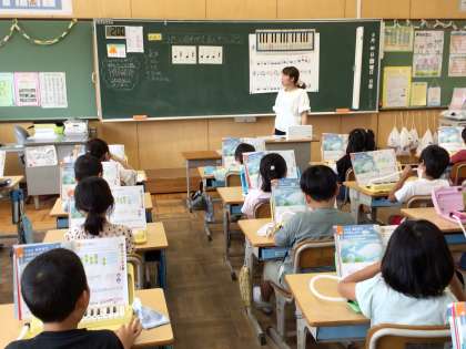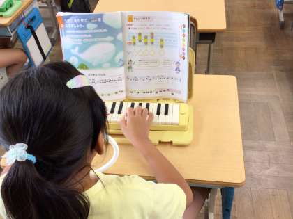 ぷっかりくじらの歌を歌ったり、鍵盤ハーモニカの演奏をしたりしました。リズムを意識して、鍵盤ハーモニカの練習をすることができました。
