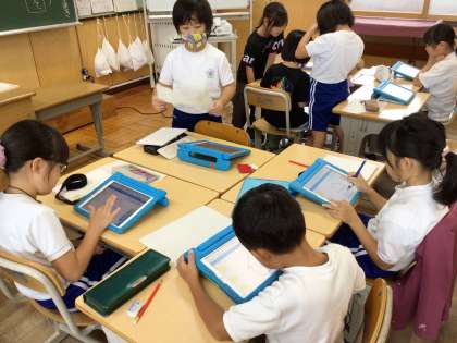 順序よく、様子を表す言葉を入れて、自分の描いた絵を説明することができました。聞いている側は説明を聞いて、絵を発表ノートに描きました。
