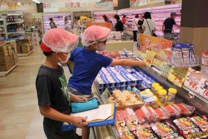 社会の学習で、実際にやまのぶの見学に行きました。お店の中の様子や普段は見られない作業の様子も見られました。子どもたちは、熱心にメモを取ったり、質問をしたりして、やまのぶの工夫をまとめることができました。明日は、3組が見学します。