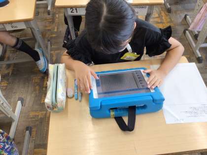 「りゅうの目のなみだ」の本を読んで心が動いた場面を決めました。読書感想画の準備をしていました。