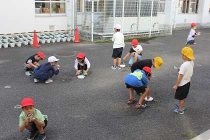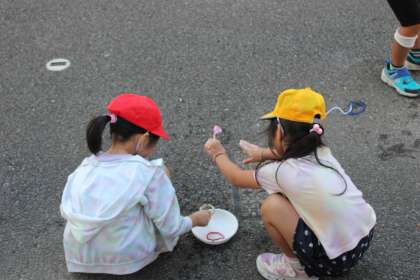 自分の作った形でしゃぼん玉を作りました。友達と見せ合う姿が見られました。