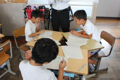 友達のスピーチを聞き、よいところやアドバイスを伝え合いました。そのアドバイスを受けて、またスピーチ原稿を書き直してよりよいものにしていきます。教員も研修をして、子どもたちの力をのばすために、どのように授業をしたらよいか検討を重ねています。