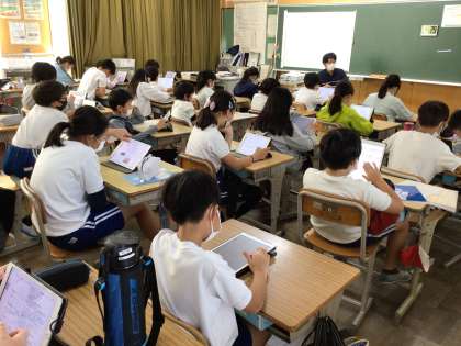 5時間目は、どの学級もタブレットを使ってキャンプの説明をしていました。後、1週間程でキャンプです。それぞれの活動がうまくいくように準備を進めていきます。