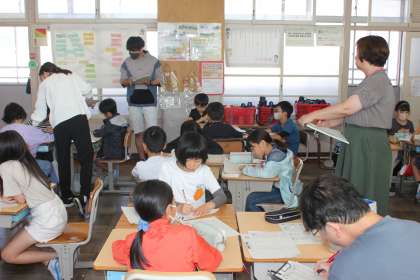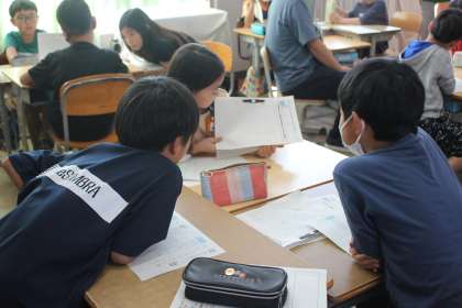 友達の他己紹介の文章を読んで、アドバイスし合いました。文章を書いたときのポイントが入っているか確認したり、言葉の掲示を見たりしながらアドバイスすることができました。