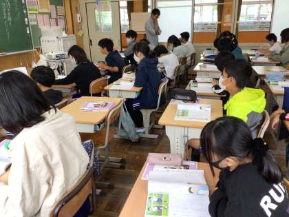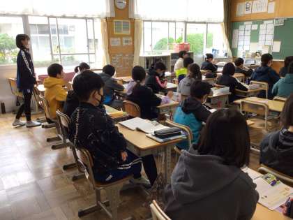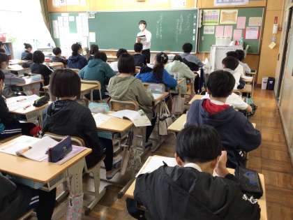 実習生の先生が授業をしていました。友達の失敗を責めていた主人公が、自分も失敗をすることで相手の気持ちを考えるという資料をもとに話し合いました。