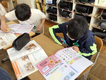 まかせてね 今日の食事の学習をしていました。朝食か夕食のメニューを栄養バランスをもとに考えていました。