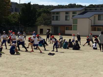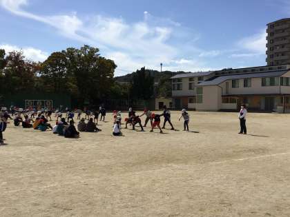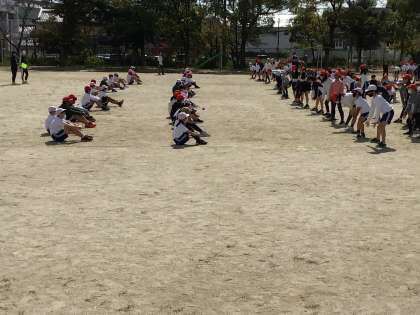 5年生と6年生が向き合って踊りを見せ合っていました。お互いによい刺激を受けながら、練習を進めていました。