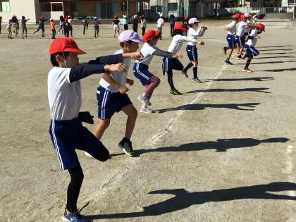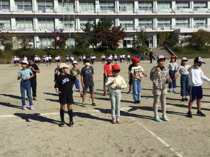 各クラスごとに分かれて、位置を確認していました。踊りを覚えて、頑張っていることが伝わりました。