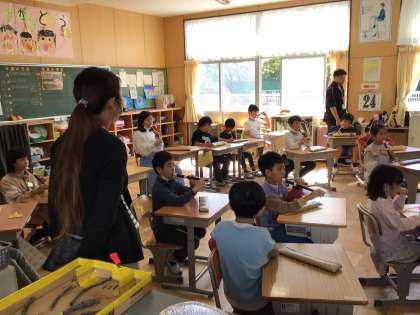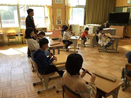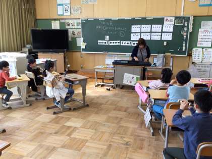 リコーダーや鍵盤ハーモニカで輪唱していました。先生のリズムに合わせて演奏することができました。
