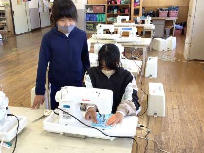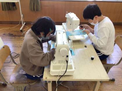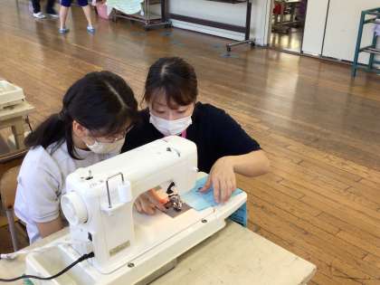 ワークスペースでミシンの練習をしました。まっすぐ縫うために集中して取り組んでいました。