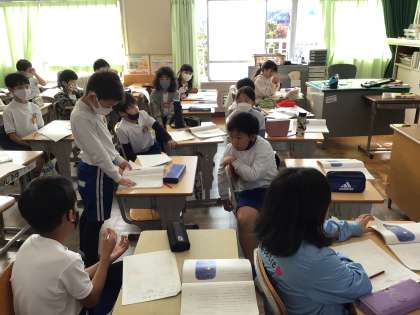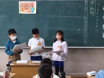 サーカスのライオンの第2、3場面の出来事や気持ちの読み取りをしていました。子ども達がミニ先生として、頑張っていました。