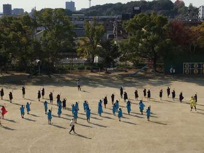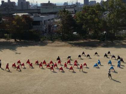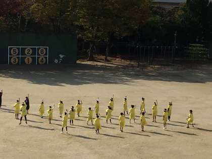カラフルなはっぴを着て、位置や移動の確認をしていました。5時間目は、高学年で合同練習しました。