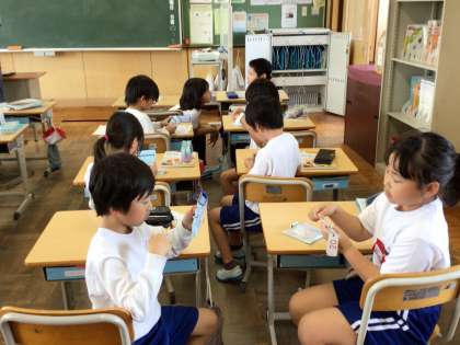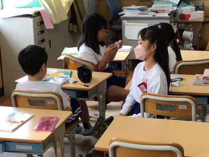 5の段の九九を練習していました。ペアの友達に聞いてもらい、頑張っていました。