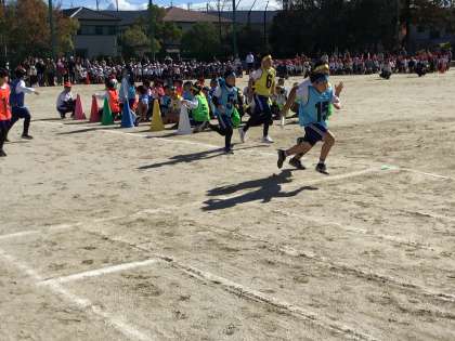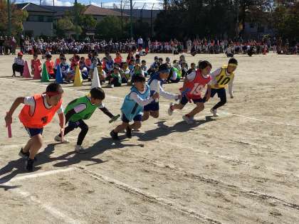 チームメイトを一生懸命応援する姿が見られました。チームで繋ぐ大切さを学びました。