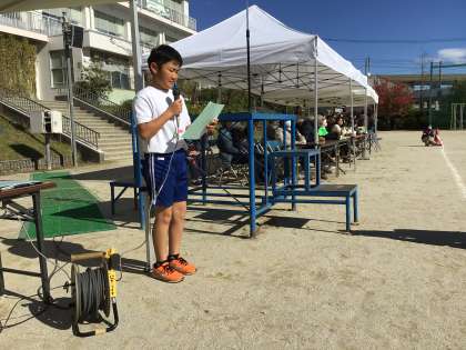 開会式、閉会式も子ども達の司会で進行しました。今日、無事にスポーツフェスティバルができたのも、6年生の準備や片付けがあったからです。