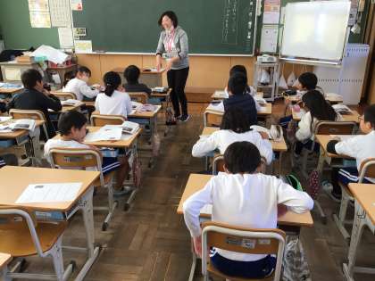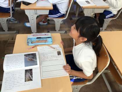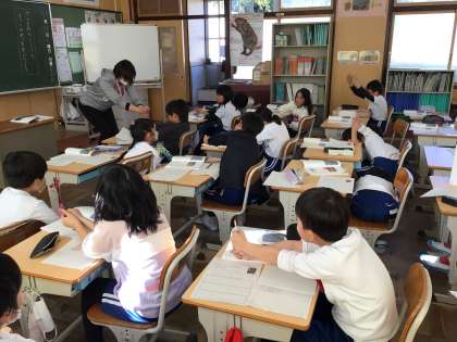 ビーバーの大工事の学習で、ビーバーがダムを作る様子を動作化していました。子ども達が意欲的に喜んでいました。