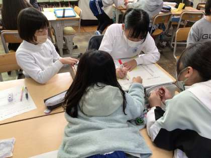 ありがとうの芽の活動の2回目が終わり、グループごとの話し合いをしました。1回目の課題を活かして、活動できました。