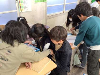 学級をよくするために取り組んできたことから、それを学校にも広げたいという気持ちが出てきました。そこで、グループごとにアンケートを取り、活動を始めようとしています。