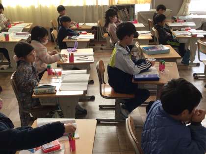 黒板にしめされた数字を数え棒を使って、作っていました。どこを動かせばいいのか、一生懸命考えていました。