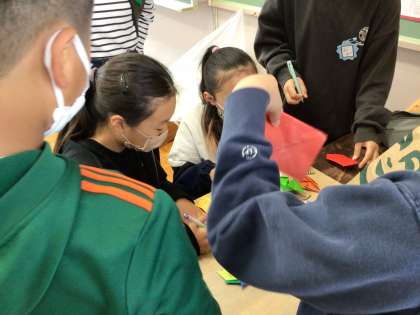 学年ごとに割り振られた仕事を確認して、当日スムーズに運営できるように練習しました。実際、自分達でやってみて、うまくいかないところはどうしたらいいか相談していました。