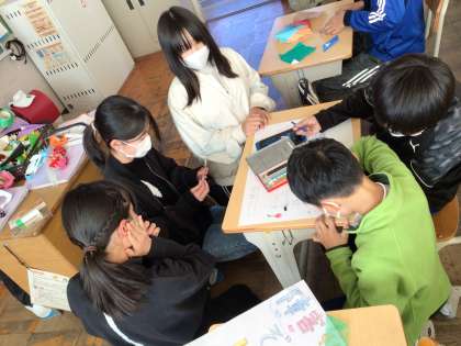 6時間目に高学年が集まって、看板や景品作りを頑張っていました。全校のみんなが楽しむためには、高学年がたくさん見えないところで動いてくれています。ありがとうございます。