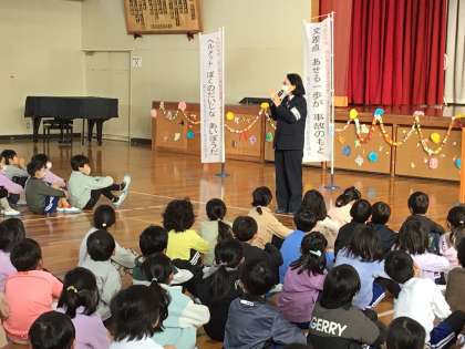 延期されていた交通安全集会が行われました。標語の表彰や交通指導員の中山さんからのお話を聞きました。交通事故が起こらないように、気を付けていきたいです。