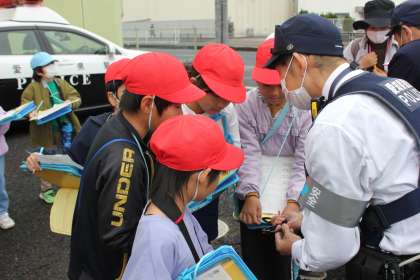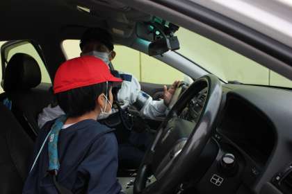 交番のコースです。お巡りさんにたくさんインタビューをすることができました。いつもは、見られないものやパトカーに乗り、とても目を輝かせていました。
