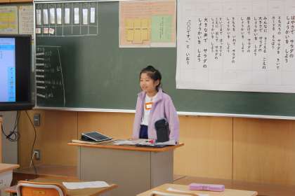 自分のスペシャルサラダの紹介をしました。めあてを意識して、発表することができました。