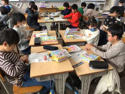 電気がつくものとつかないものを実験しました。身の回りのものでたくさん試していました。