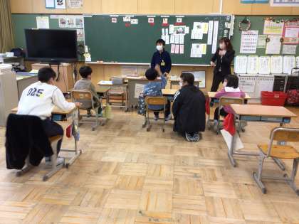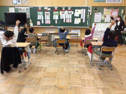 どうやって身を守るのかな、の教材をもとに動物クイズを作りました。3つのヒントから答えを考えました。いろいろな答えが出されて盛り上がりました。一人一人の目標が達成できたので、次の授業では他のクラスの友達にクイズを出す予定です。