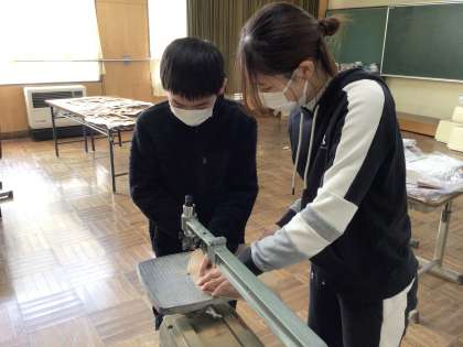 糸のこぎりを使い伝言板を作っています。切りたい場所を切ることが難しそうでした。