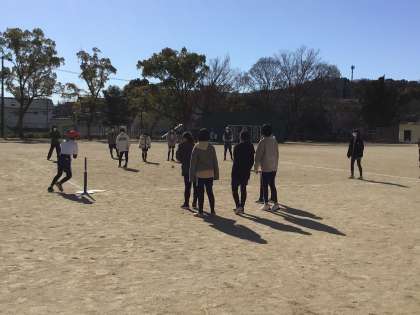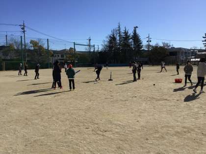 ティーボールの試合をしていました。声を掛け合いながら、チームメイトと活動していました。