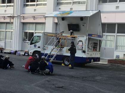 今日は、4年生がクラブ見学をしました。来年度に向けてイメージをもつことができました。消防クラブには、地震体験車が来て貴重な体験をすることができました。