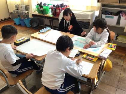 木曜日に行われる入学説明会での交流の準備をしていました。一年間でどんなことをするのか紹介する予定です。