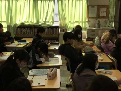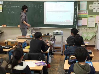 変わり方の学習をしていました。机に何人座れるか考え、机の数が増えると人数がどのように変化するか表を作りながら、そのきまりを考えることができました。