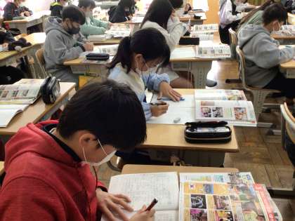 韓国について学びました。日本と同じ点や違う点はどこか考えながら、まとめることができました。
