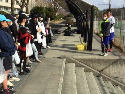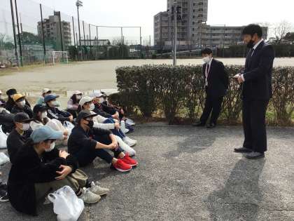 体育館、運動場、屋内の3カ所をローテーションしながら見学しました。部長さんの説明を一生懸命聞いていました。部活の様子を見てどこにしようかという会話も聞かれました。