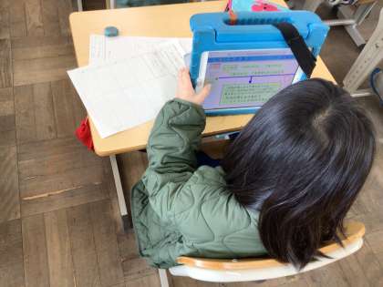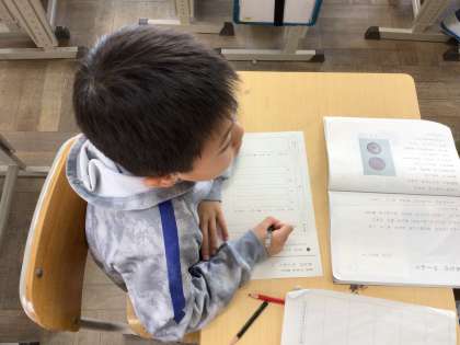 3組も同じ学習でした。どの言葉があると始め、中、終わりになるか話し合っていました。振り返りは、発表ノートの話型を見ながら書いていました。
