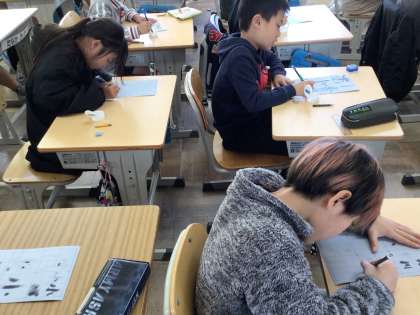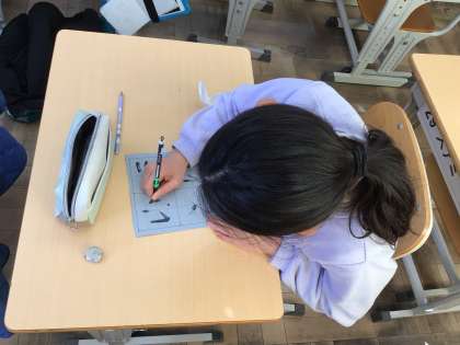 来年に向けて水筆を使い、字を書く練習をしました。初めて筆を使う子も多く、喜んで取り組んでいました。