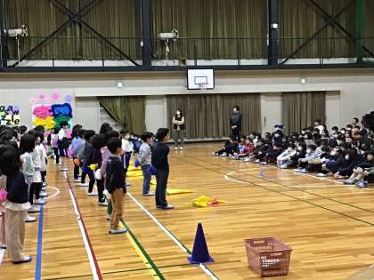 1〜5年生が集まって通し練習をしました。明日の本番が成功するように、みんなでがんばります。
