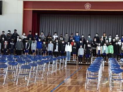 今日は、段に並んで位置の確認をしました。合唱も練習を重ねています。