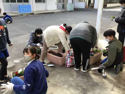 午後は、グループごとに学校のために活動してくれました。机を運んだり、パンジーの植え替えをしたり、掃除や草取りをしたり、本当にたくさんボランティアしてくれました。ありがとうございます。