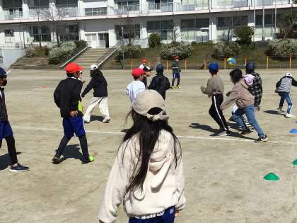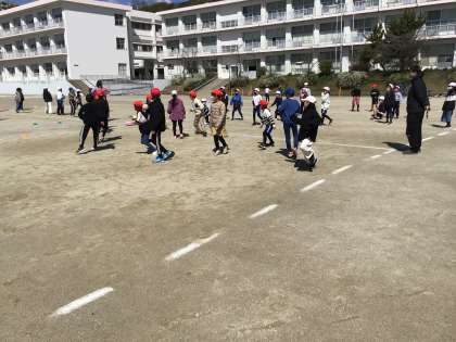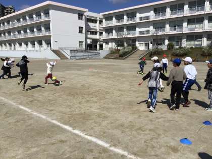 ドッチボールをして楽しみました。クラスをこえて交流することができました。
