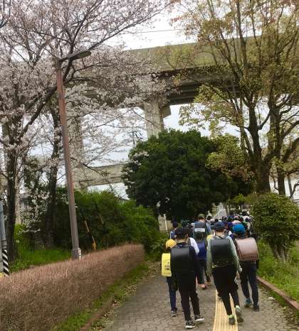 4月5日の梅坪小学校(5)一斉下校風景