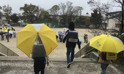 置き傘がなく、学校の傘を借りる子もちらほらいました。